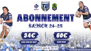 Les abonnements permettent de bénéficier d’une réduction de plus de 60% par rapport au prix initial, pour chacun des 10 matchs de saison régulière de championnat Super XIII qui se joueront au stade Arnauné, avec un don de 100€.