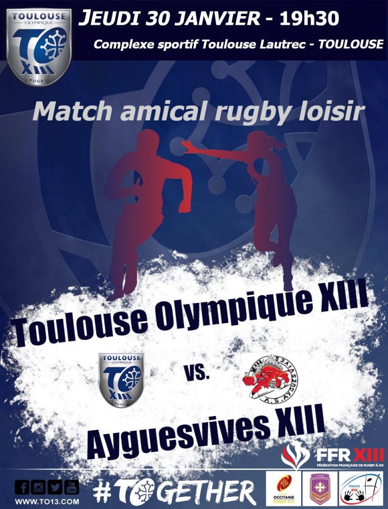Pour bien commencer l’année 2020, la section loisir du Toulouse Olympique XIII recevra ses amis du club d’Ayguesvives XIII, le jeudi 30 janvier, sur son terrain du complexe sportif Toulouse Lautrec. Les féminines seront également à l’honneur et s’associeront à ce match amical.